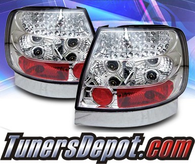 Sonar Audi S4 Chrome LED Tail Lights (aka Spyder Audi S4 Chrome LED Tail Lights) are a slick high tech upgrade for old or worn out stock tail lights on your S4. L.E.D. taillights are the newest type of tail lights available, and they use super bright and fast acting LED's to give your S4 the look of the newer high end vehicles on the road. With a relatively simple installation, you could enjoy the benefits of faster light response time as well as increasing the visibility of your signaling and braking. Best of all, these Sonar S4 L.E.D Chrome tail lamps give you a clean look similar to the red/clear style of taillights, with the same type of aggressive styling found on Altezza tails. Also, due to their bulb-less design, they are more resistant to leaking and fogging up than the other styles of tail lens available.