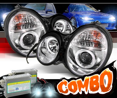 These Sonar Mercedes E320 Chrome Angel Eyes Projector Lamps (aka Spyder Mercedes E320 Chrome Angel Eyes Projector Lamps), like all the other headlights, tail lights and fog lights on our site, come complete with both sides, and should be street legal in most communities.