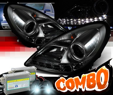 Sonar Mercedes SLK300 Smoke DRL LED Projector Headlights (aka Spyder Mercedes SLK300 Smoke DRL LED Projector Headlights) are the newest style head lamp for your prized SLK300. Sonar DRL LED Projector Head Lights use a convex lens to project the light of your low beams over a wider area, increasing the overall viewing area of your SLK300's head lamps. These Sonar Day Time Running Light LED Projector Lights can be a great for improving nighttime driving by allowing to see more of what is ahead and around you.