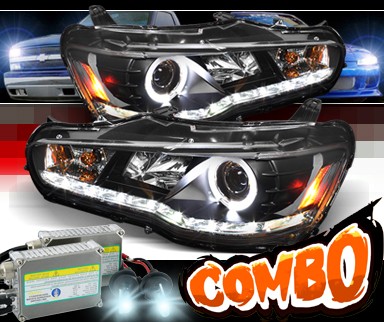 Also, these Mitsubishi Lancer Sonar DRL LED Black Projector Lamps are equipped with European exotic car inspired LED daytime running lights (also called R8 style DRL's). The strip of super white L.E.D. lights not only add a high-tech look to your Lancer's headlamps, but they also provide the added safety benefit of illuminating shady or darkened areas you might come upon during daytime driving. At night, these Sonar Mitsubishi Lancer JDM Black Day Time Running Light L.E.D. R8 Style Projector Headlights also boost your head lens total light output increasing visibility allowing you to respond faster to obstacles that might come into your path.