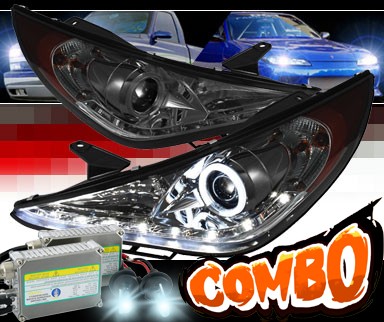 These Sonar Hyundai Sonata Smoke LED CCFL Angel Eyes Projector Lamps (aka Spyder Hyundai Sonata Black LED CCFL Angel Eyes Projector Lamps), like all the other headlights, tail lights and fog lights on our site, come complete with both sides, and should be street legal in most communities.