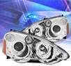 In addition, these Acura RSX KS Chrome LED Angel Eyes projector lamps utilize halo technology which increases the overall illumination. The halos act as rings of light surrounding the headlight bulb areas accentuating and increasing the amount of light output. The halo wires are left unwired, allowing the user to decide if they want the halo to function as signal lights, parking lights, or to be operated independently of other light functions (accomplished by splicing the wires into the appropriate locations).