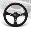 This particular model features "drifting" logo in red stitch with a red horn. Also, it is a deep dish design with a depth of 78mm.